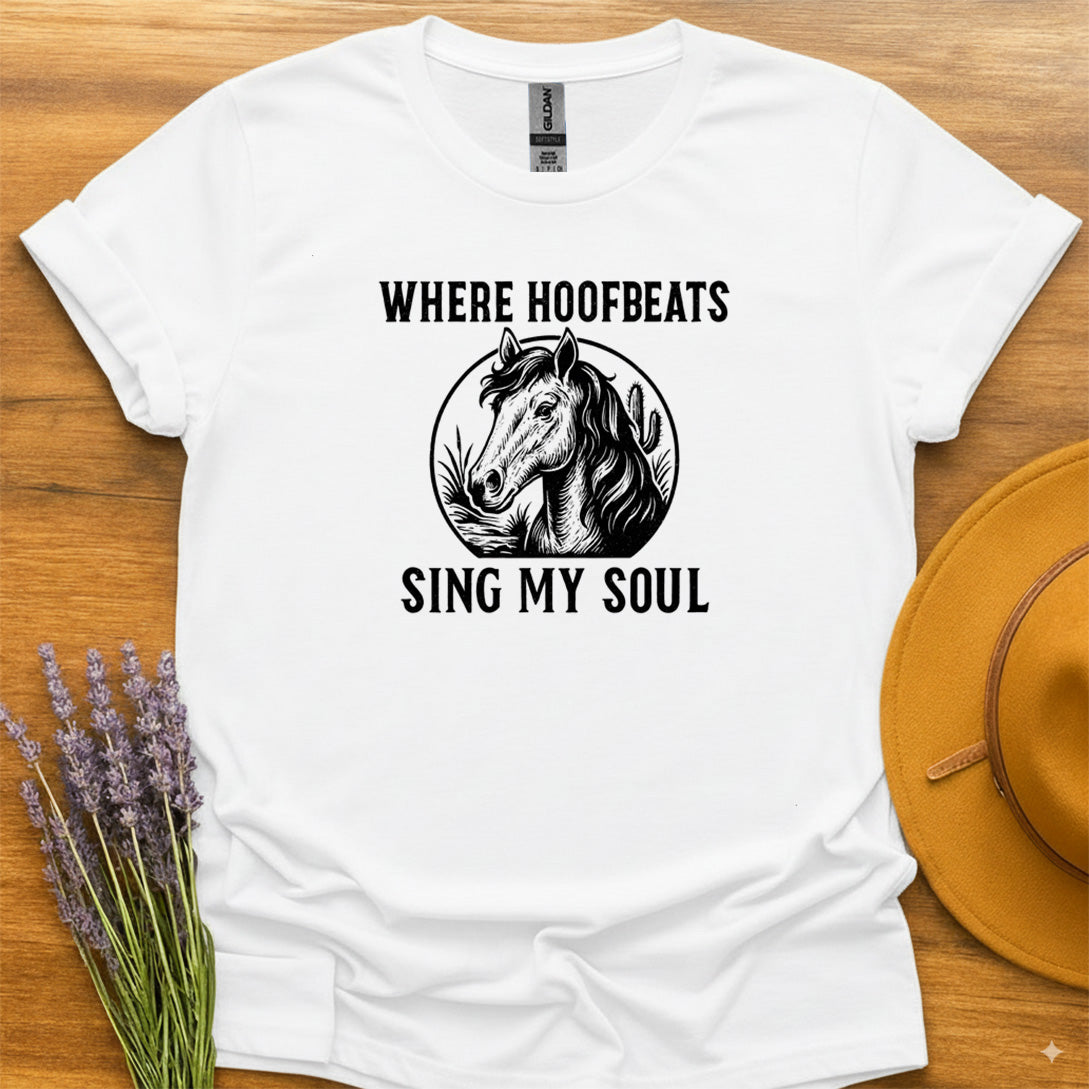Imagine yourself at a weekend country festival, the sun setting behind rolling hills as you sing along to your favorite melodies. The Hoofbeats Sing My Soul T-shirt fits seamlessly into this moment, offering a perfect blend of comfort and style that lets you express your passion for music and nature. Whether you're gathered around a campfire or strolling through artisan markets, this shirt becomes an extension of your free-spirited lifestyle.