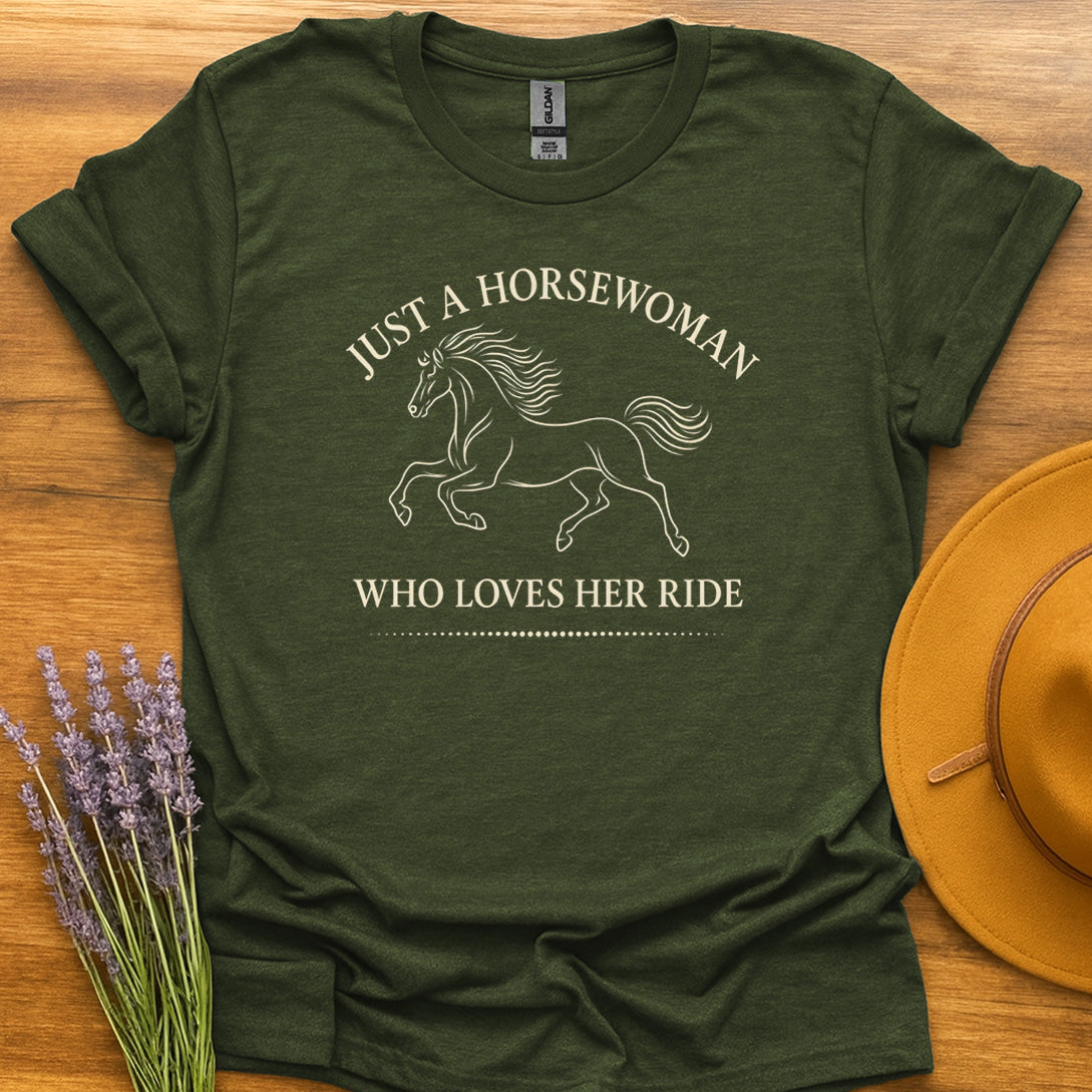 Picture yourself riding through open fields at sunset, the wind gently tousling your hair as you connect deeply with your horse. Whether you’re heading to the barn, meeting fellow riders, or simply embracing your passion for equestrian life, the Just A Horsewoman T-shirt becomes more than just clothing—it’s a statement of who you are. This tee brings a sense of belonging and pride, reminding you of the joy and freedom that comes with every ride.