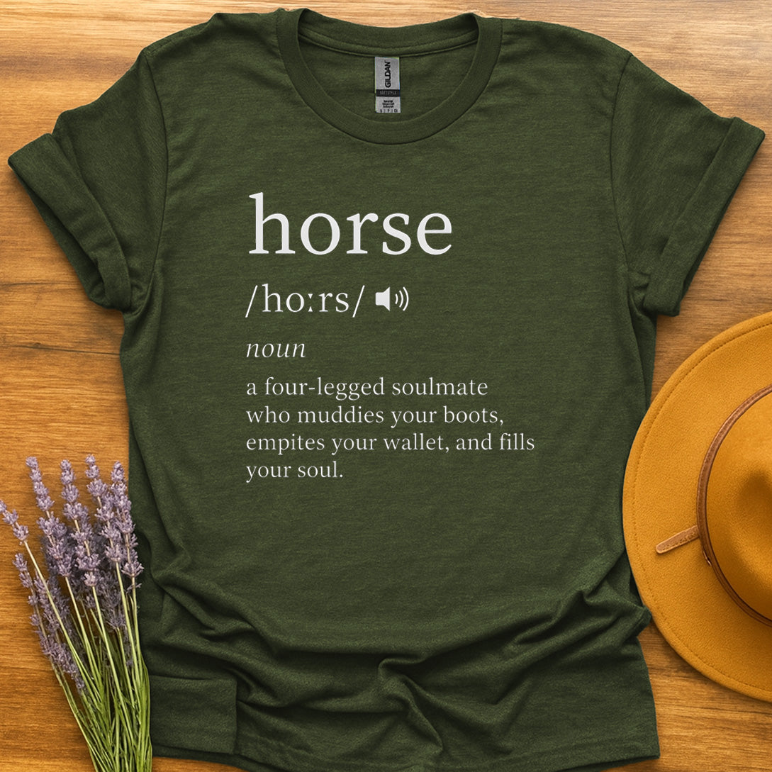 Loved by equestrians, trainers, and horse enthusiasts alike, The Horse Dictionary tee has become a staple for anyone who wants to celebrate their passion comfortably and confidently.