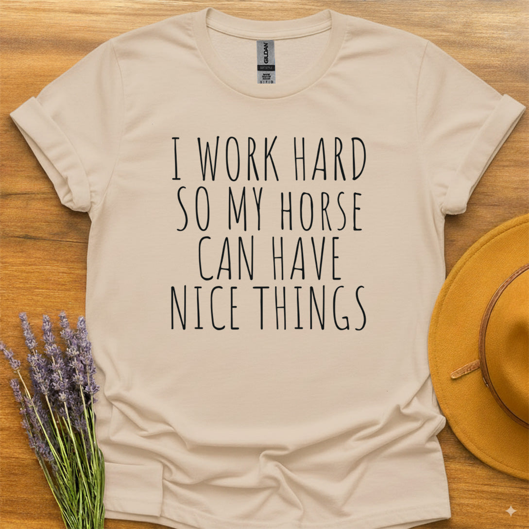 Wearing this “Working Hard For My Horse” t-shirt inspires a sense of pride and connection to what matters most—your equine companion. It’s more than just apparel; it’s a way to celebrate the hard work and love you put into every ride and every chore. The comfort it provides lets you focus on your horse instead of your clothing, keeping you motivated throughout the day.